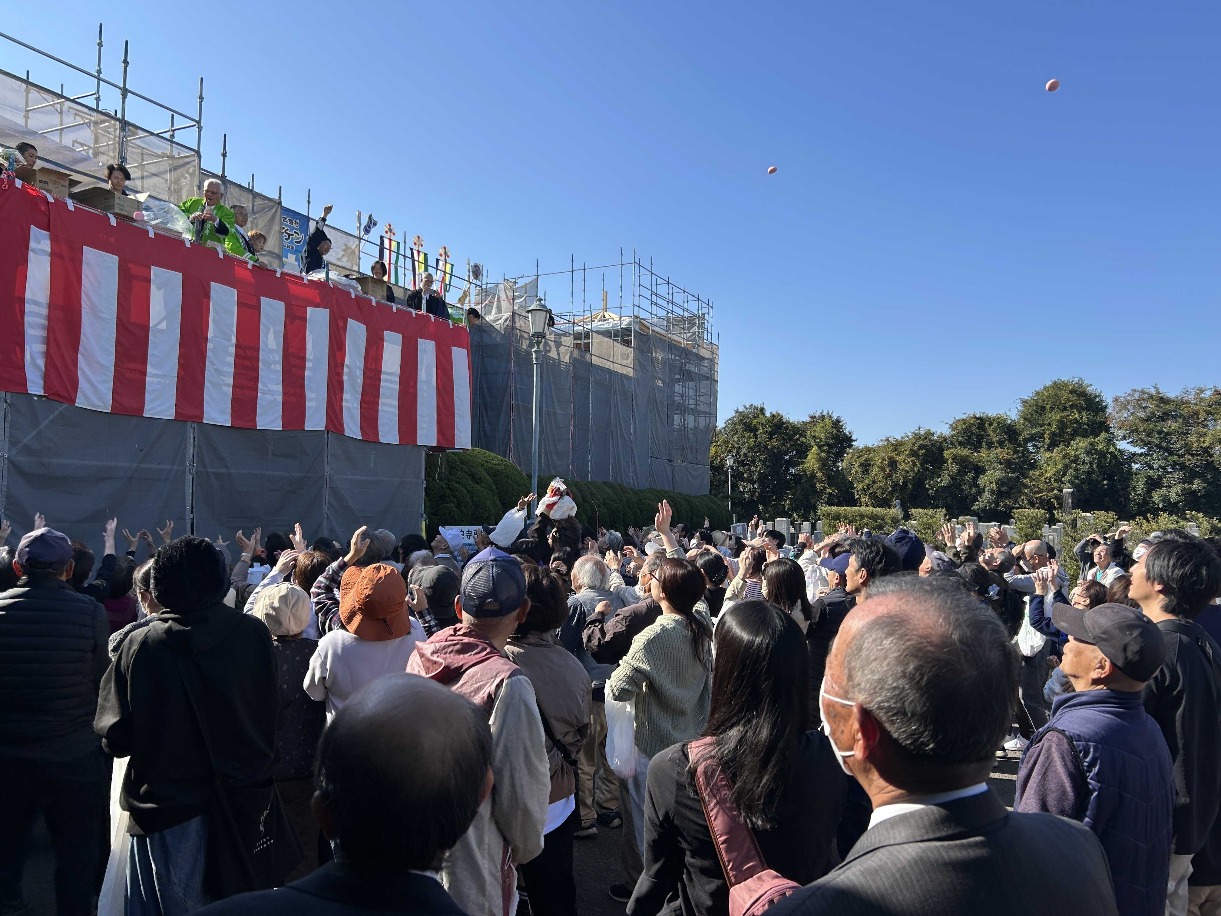 △「散餅散銭の儀」犬山市のお餅はソフトボールサイズ!... 当たるとなかなか痛いです!