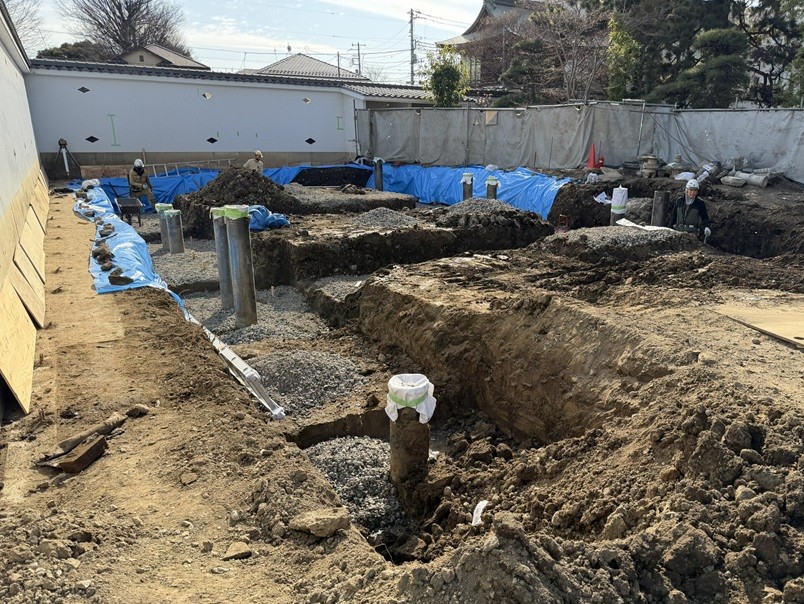 埼玉県草加市の浄土宗 浄捷寺で庫裡御堂新築、杭工事が完了 伊藤(知)
