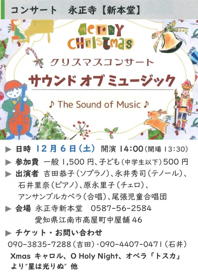 12月6日(土)14:00開演(13:30開場) ♪クリスマスコンサート♪ ~愛知県江南市 永正寺~