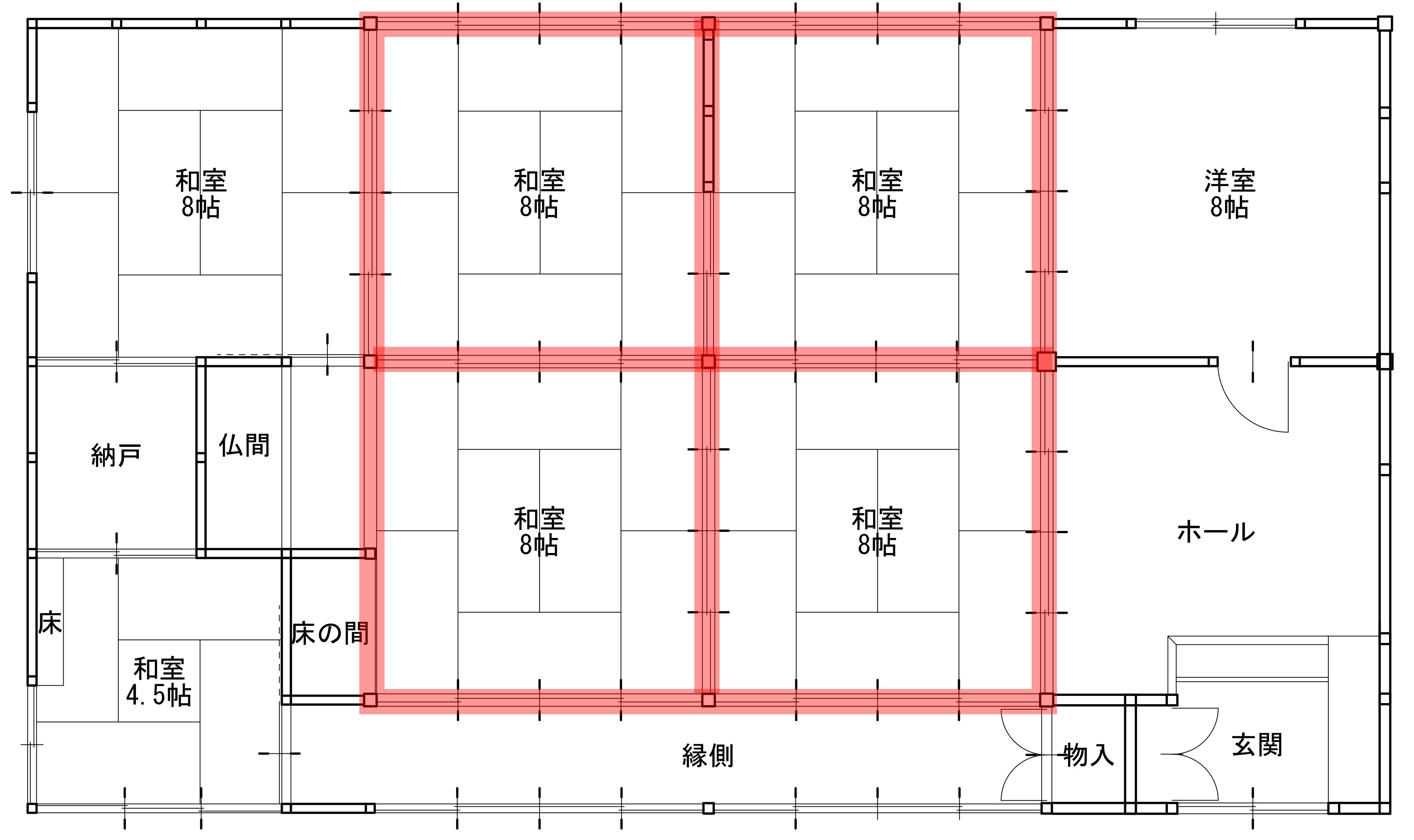 しかし、田の字型は、北側の部屋が廊下に面しておらず、