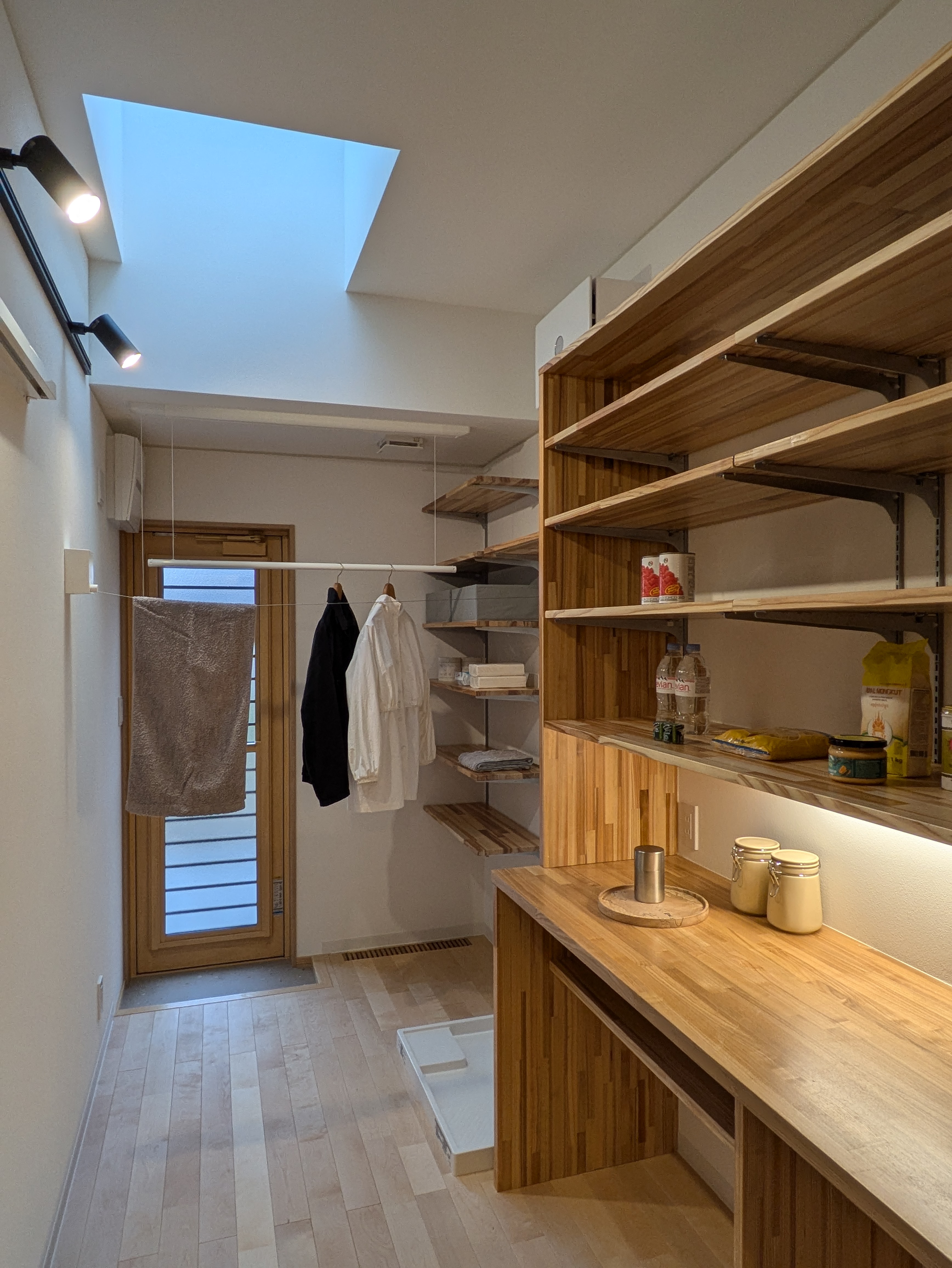 たとえば、キッチンから洗面室やランドリーへとつながるウォークスルータイプのパントリーは、料理と洗濯を並行して行いやすく、移動の負担を軽減できます。